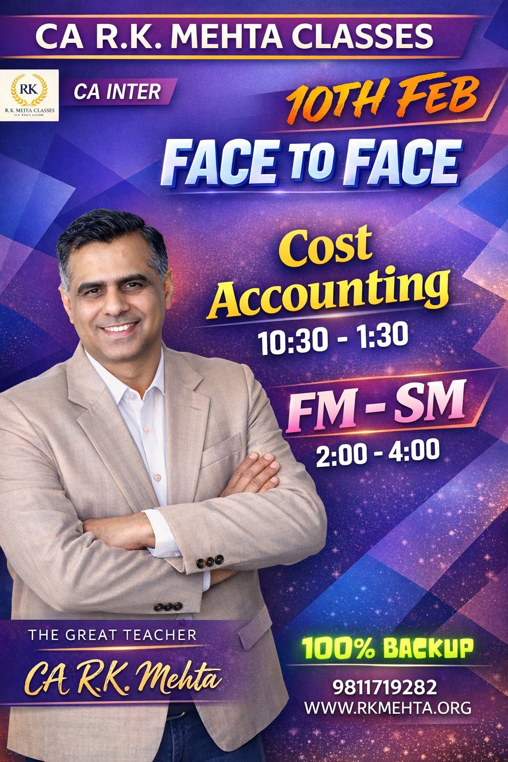 Boost your CA Intermediate preparation with India’s leading faculty and most trusted classes. Whether you're aiming for Group 1 or Group 2, our comprehensive video lectures and face-to-face batches are tailored to the New Syllabus and are ideal for upcoming exam attempts.