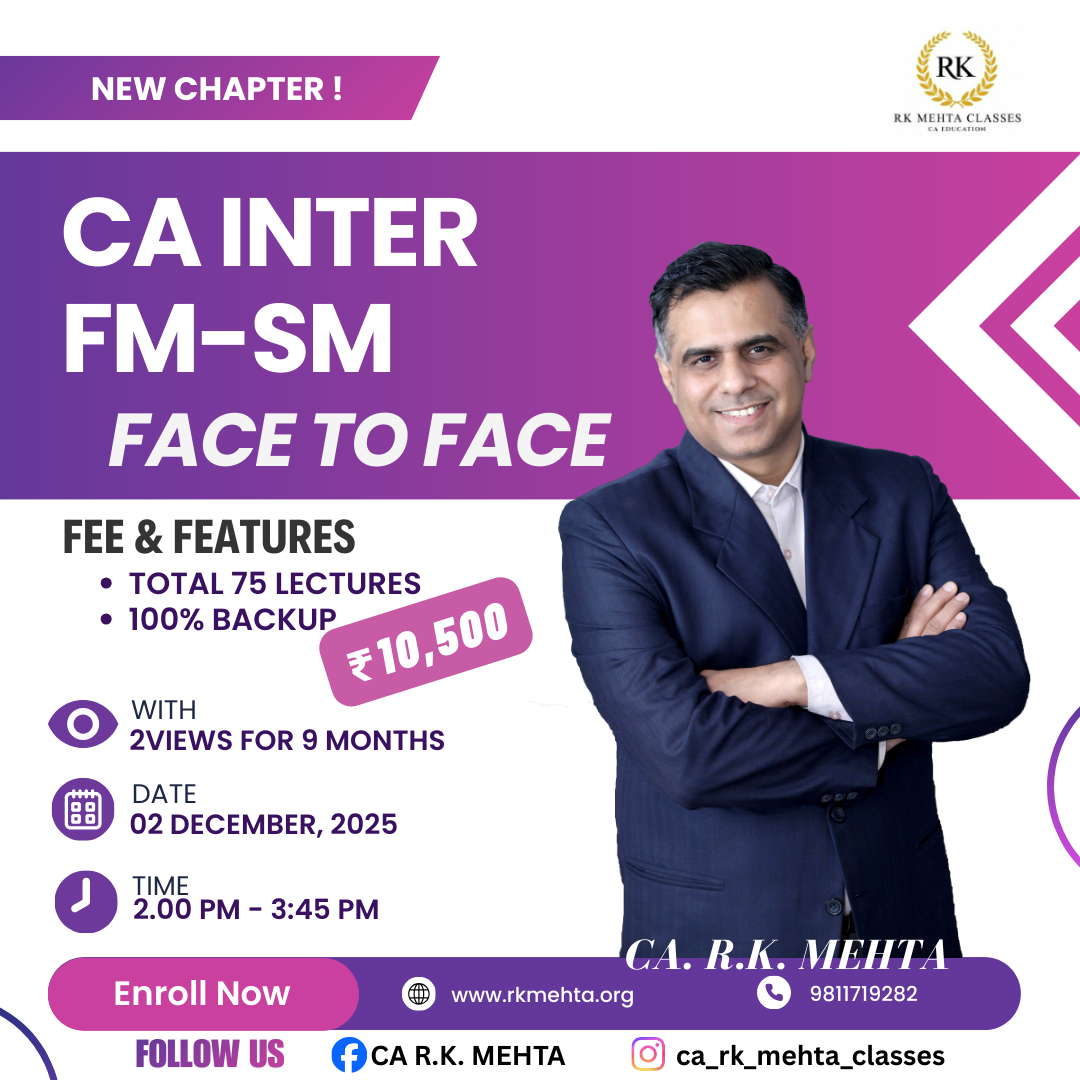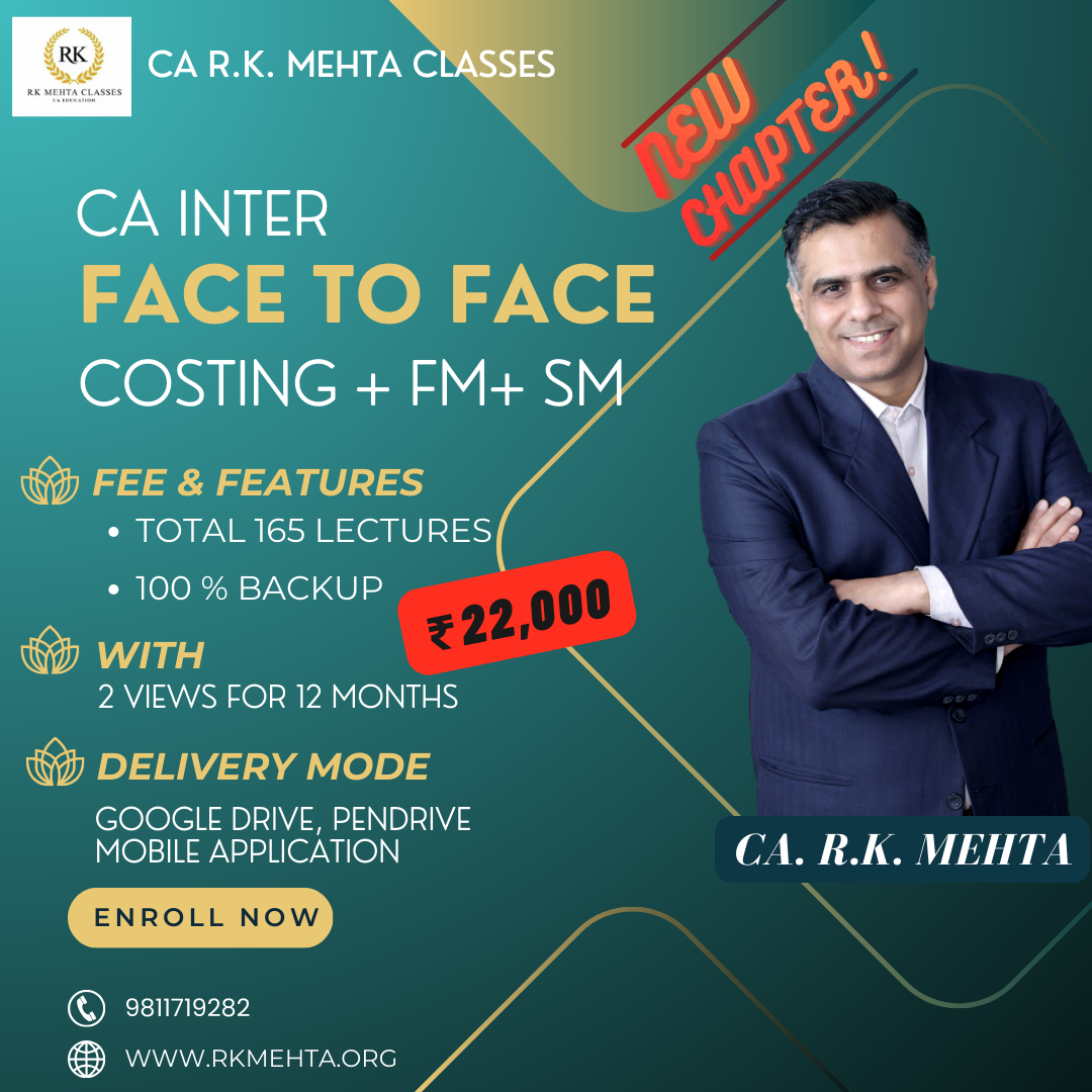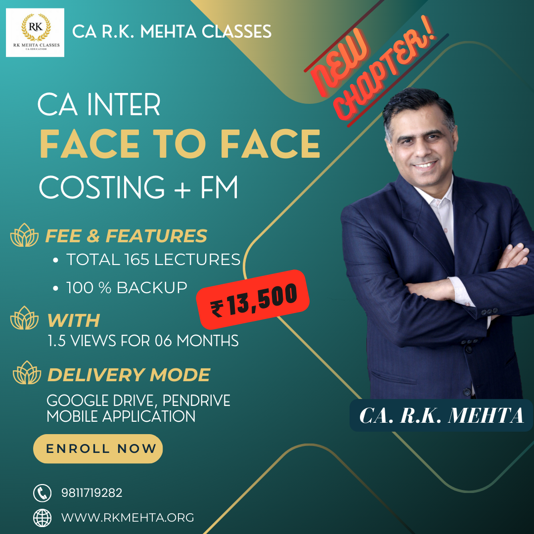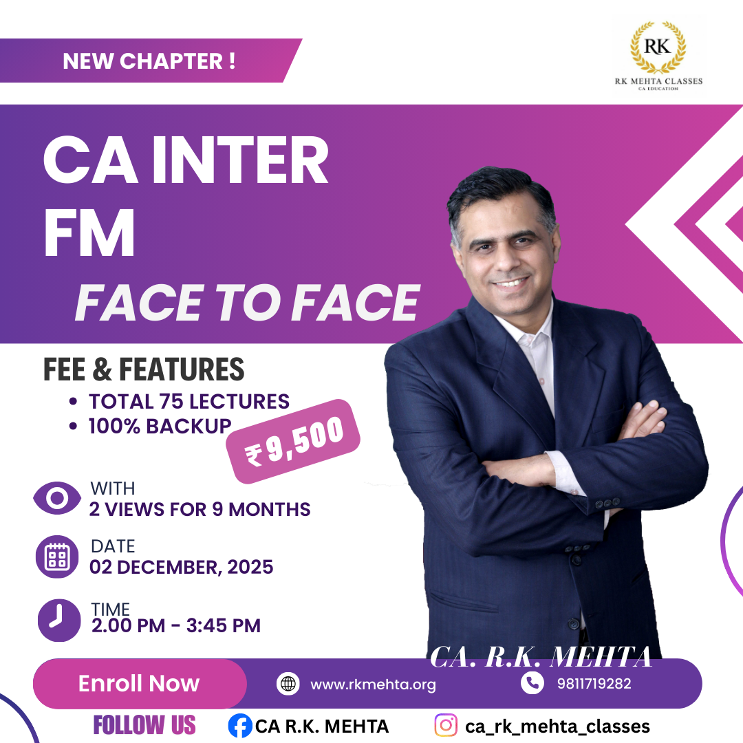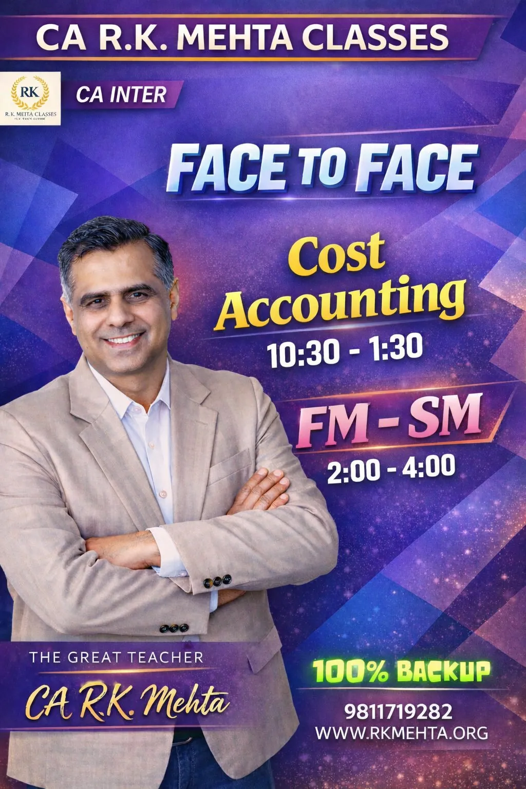 Boost your CA Intermediate preparation with India’s leading faculty and most trusted classes. Whether you're aiming for Group 1 or Group 2, our comprehensive video lectures and face-to-face batches are tailored to the New Syllabus and are ideal for upcoming exam attempts.