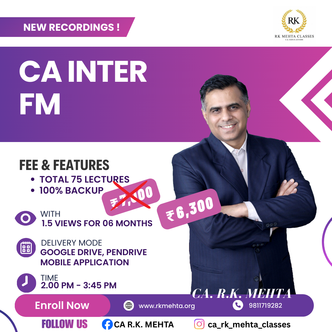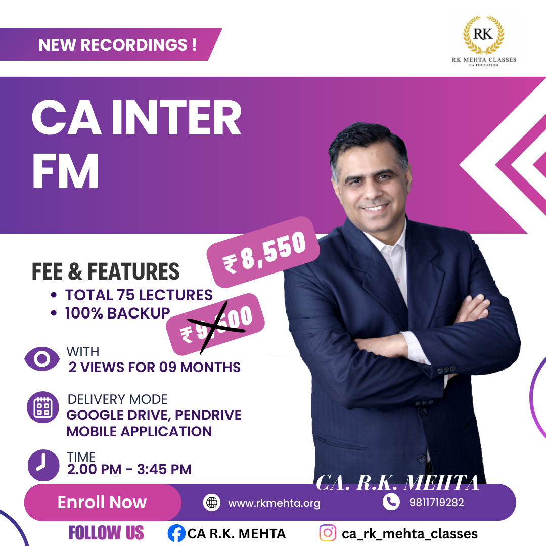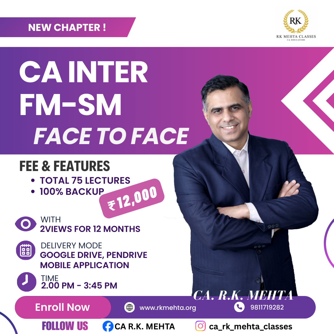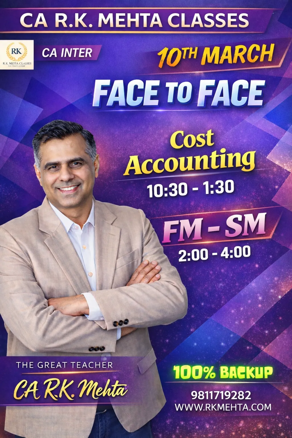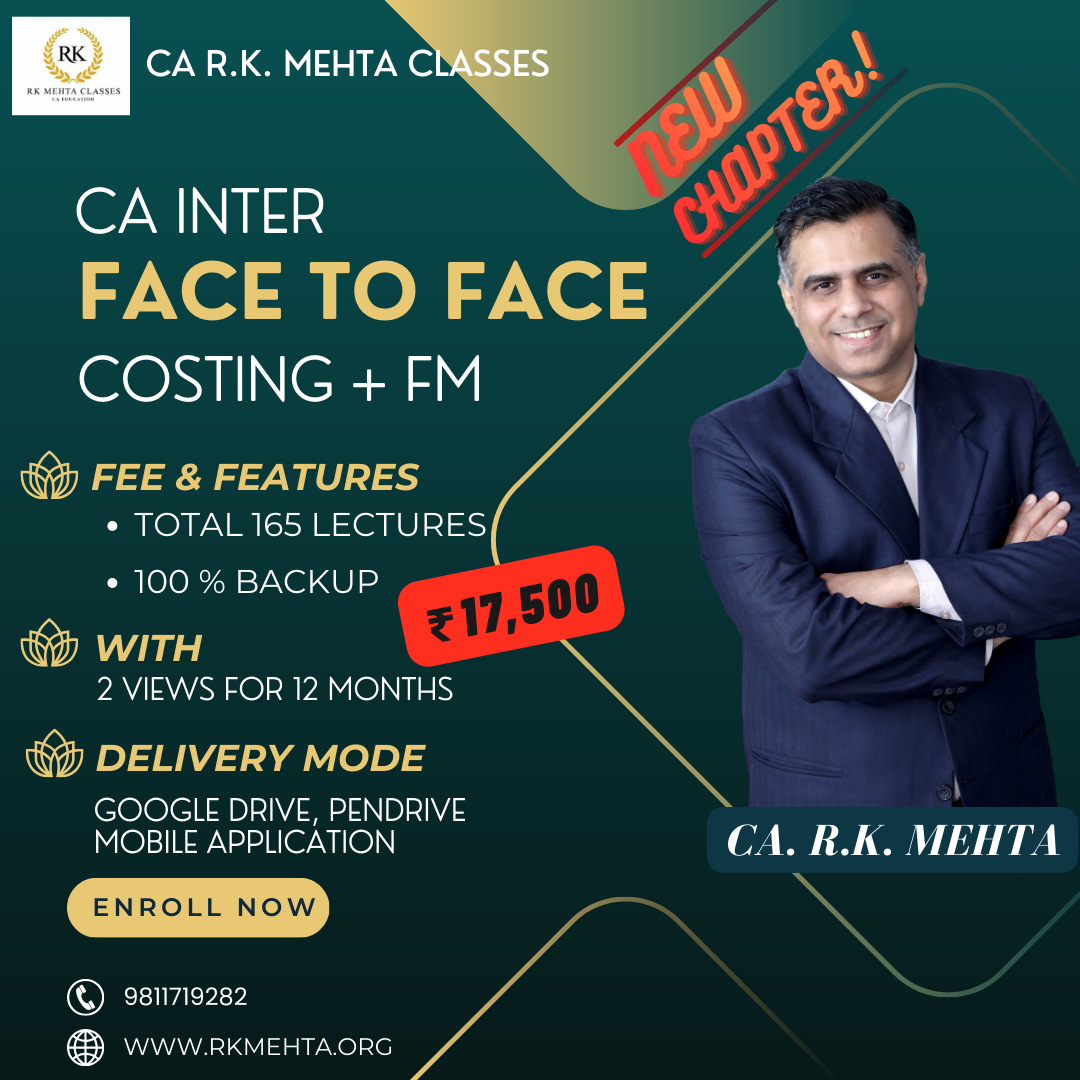 Boost your CA Intermediate preparation with India’s leading faculty and most trusted classes. Whether you're aiming for Group 1 or Group 2, our comprehensive video lectures and face-to-face batches are tailored to the New Syllabus and are ideal for upcoming exam attempts.